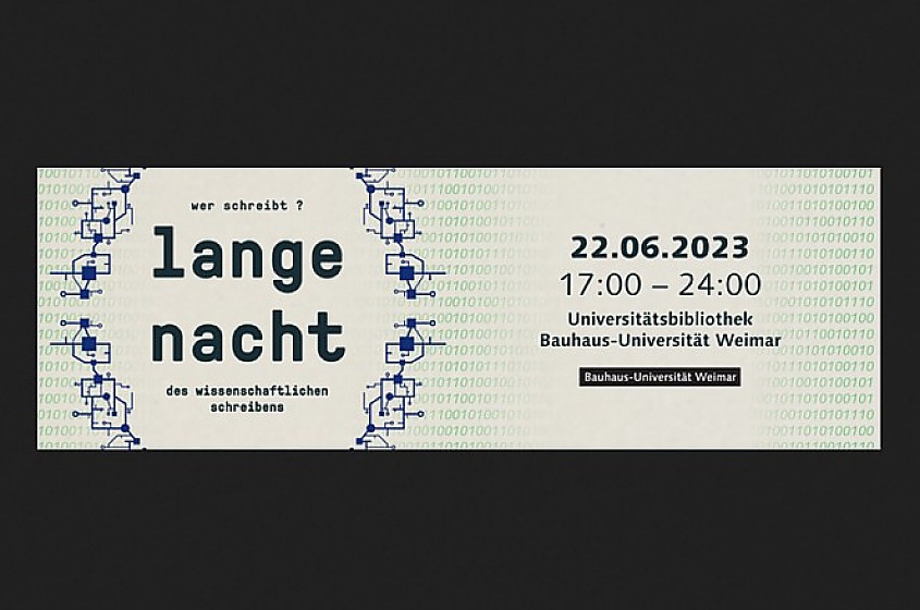 22. Juni 2023 / Weimar, NachrichtenDie Universitätsbibliothek veranstaltet heute ihre diesjährige "Lange Nacht des wissenschaftlichen Schreibens". Eingeladen sind neben … weiterlesen