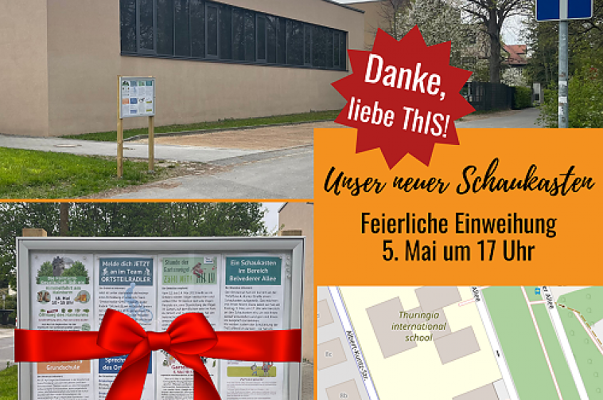 05. Mai 2023 / Weimar, NachrichtenIn Oberweimar-Ehringsdorf wird heute ein neuer Schaukasten eingeweiht. Der Ortsteilrat hat dazu eingeladen. weiterlesen